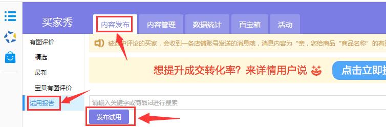 1。首先你必须参加免费试用才有机会在淘社区曝光~