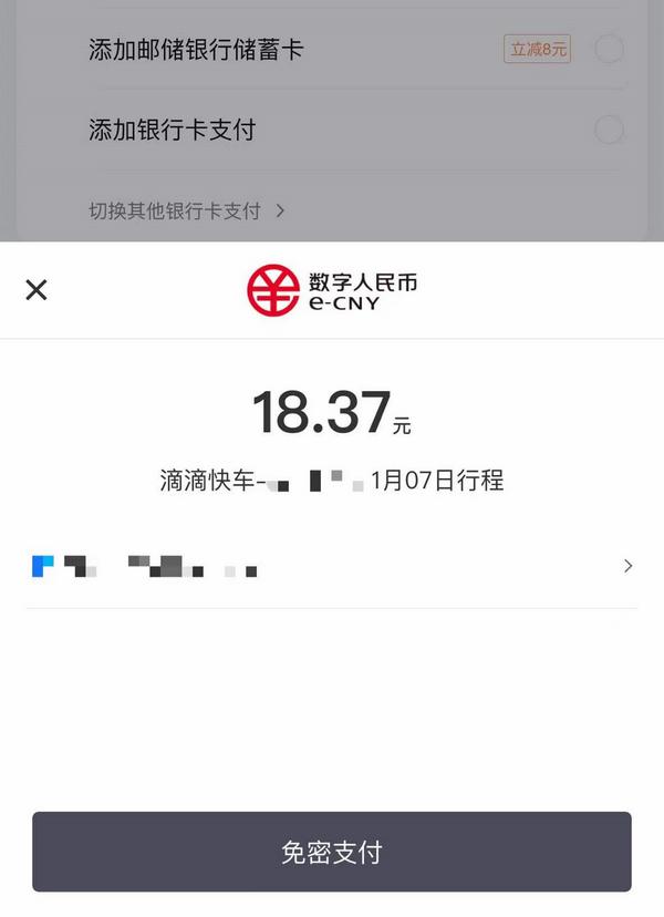 1月7日,中新财经也使用数字人民币支付出租车费。支付流程的小技巧如下:首先,给个人数字钱包充值。目前有两种方式:从手机银行转账,用银行卡充值,然后在子钱包商户列表中添加打车APP,再打开打车APP正常下单,在“支付方式”中选择数字人民币支付,完成数字人民币在线支付出租车费用。