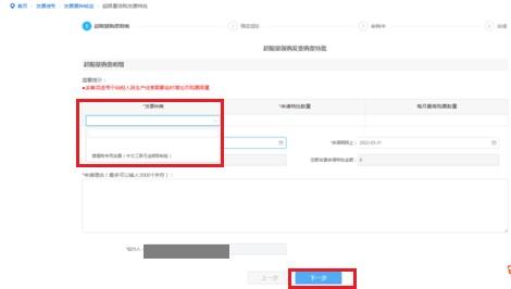 选择超限采购需要申请的发票类型,填写相应信息,点击下一步,确认后提交。