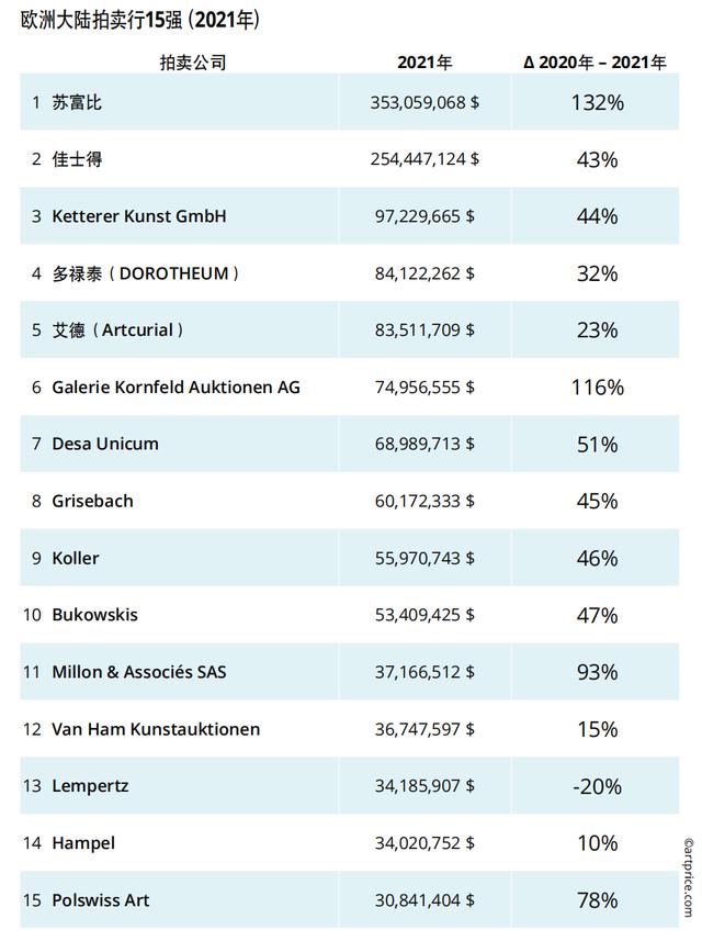 除了这些知名的国际拍卖行,欧洲市场还有很多值得我们关注和研究的拍卖公司,这些拍卖行在2021年的表现尤为突出。