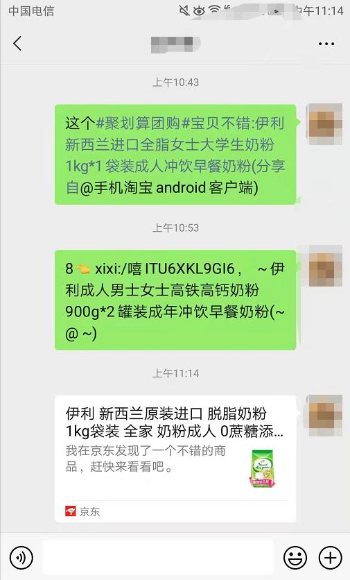 最重要的分享渠道微信,红星资本局尝试后显示“淘密码已复制”,或者需要手动复制一串随机代码粘贴到微信中,淘宝链接无法直接通过微信打开。通过微信朋友圈分享淘宝链接,只能在朋友圈复制图文资料和密码。