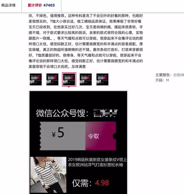 淘宝和拼多多毕竟是平台,剩下的淘宝客网站都是有组织的。但是很多人在互联网的各个缝隙和角落都能看到很多广告,比如微信官方账号,朋友圈,淘宝购物下的评论等等。主要内容是引导用户关注自己的微信官方账号,在那里可以获得优惠券,然后便宜买东西。这些广告是互联网上的牛皮癣——无处不在。