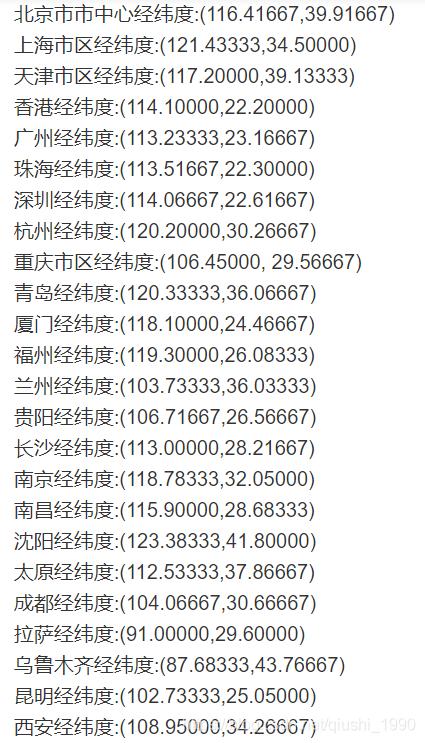 一,创建数据首先,我们在查询附近的人时,需要知道附近的人的位置,也就是经纬度。这里我以几个城市的经纬度为例。