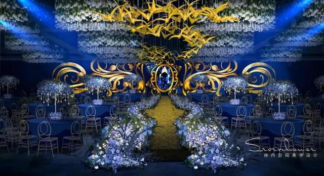 空云顶和金色灯柱象征着尊严、荣耀、光荣和神圣。舞台两侧的花道笔直延伸,让人感受到爱,理解爱,见证爱的诞生。