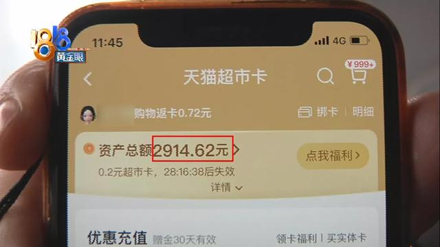去年10月,朱女士办了一个88VIP,在天猫超市可以享受9.5折优惠。后来她买了天猫超市卡。目前卡内余额2900余元。