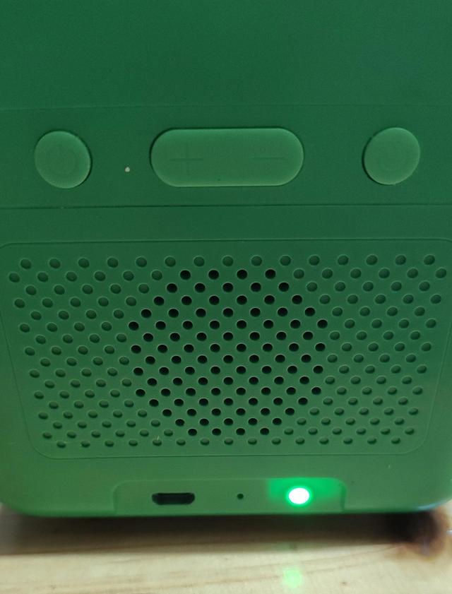 F1音箱的第一个按键是功能键。点击播报电量和网络状态,长按2秒重播上次支付。