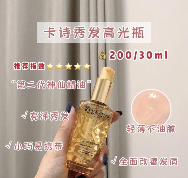 卡诗的护发精油是我见过的颜值最高的。全新升级配方添加了茶树精华和玛露拉活肤精华,能全面深入改善发质。强韧的发质很适合我这种烫头发染发的小姐姐们。洗完头发后,取2泵涂在湿发上,香味浓郁,吸收快,满分!!!