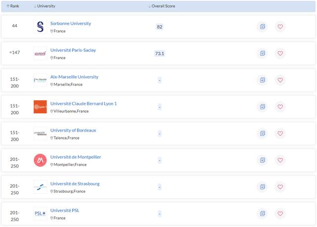 法国最好的医学专业都设在索邦大学。索邦大学由巴黎第四大学和巴黎第六大学于2017年合并而成。后者是五月风暴前巴黎大学科学院和医学院的继承者。所以索邦大学的医学专业很强。