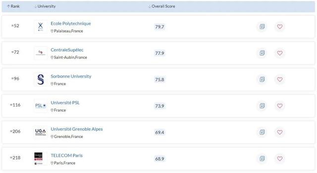 推荐院校:巴黎文理学院、巴黎理工学院、索邦大学、巴黎高等电信学校、巴黎中央理工学院高等电力学院。