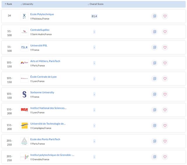 法国最强的工程技术机构是巴黎理工学院。作为法国顶尖的工科大学,被誉为法国精英教育模式的巅峰。连续多年位居法国各类机构之首。