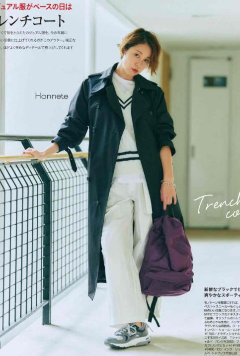 虽然建议不要一直穿毛衣,但是还是可以和毛衣叠穿。比如下面这位博主用毛衣叠风衣,会很时尚。宽松的风衣搭配白色毛衣,清爽利落,对于身材微胖或者年龄偏大的女性来说非常友好。