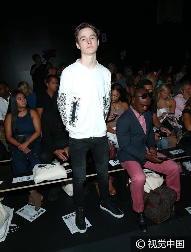 2016年9月13日,纽约,当地时间9月12日,2017春夏纽约时装周,Artistix明星秀。帕特里克·芬尼根帅气亮相。杰克·杰克·米勒(Jake Jake Millar)印花衬衫搭配黑框眼镜出镜。汤米·汤米·席尔菲格和他的未婚妻迪·奥克雷波一起出现了。图片:视觉中国
