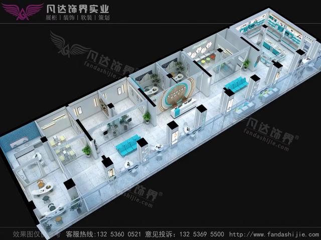 首先是围绕专业需求和服务内容来设置的。常见的功能分区有:引导区、产品展示区、隐形区、检查室、诊断室、治疗室、视功能训练区、斜弱视训练区等。
