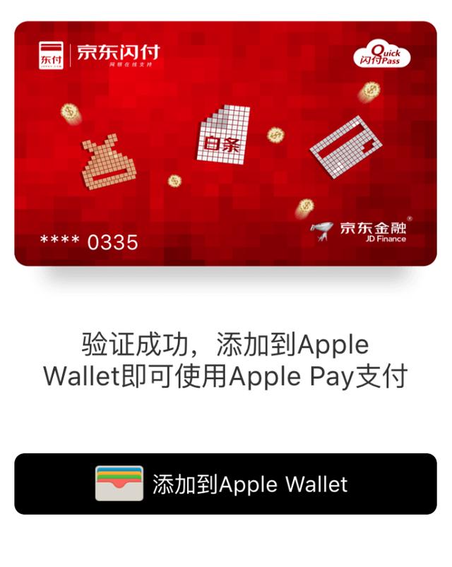 银行卡绑定JD.COM闪付后,JD.COM闪付虚拟银行卡可以加入Apple Pay。
