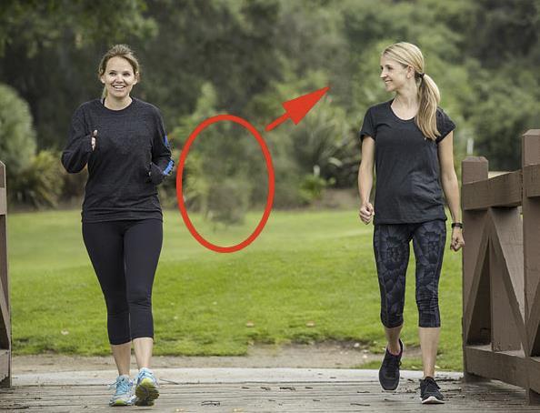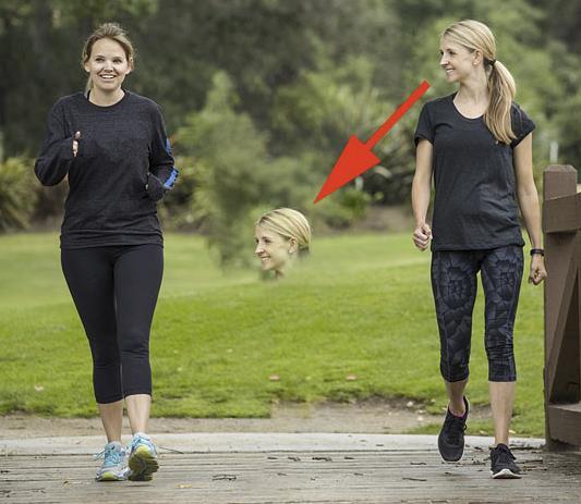 我们在预览面板中查看结果。因为我把左边的女人从采样区去掉了,Photoshop就不再用她来填充我的选择了,这很好。但是现在我们有了一个新问题。Photoshop已经切换到右边的女人了。让我在图像中心放置一个浮动的头部: