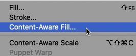 选择完成后,转到菜单栏中的编辑菜单,然后选择新的内容感知填充命令。请注意,在Photoshop CC 2019中,您仍然可以从“填充”对话框中选择内容标识。