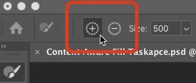 我们可以使用采样画笔工具编辑采样区域,删除图像中不希望Photoshop找到替代内容的部分。从左侧工具栏的顶部选择采样画笔工具: