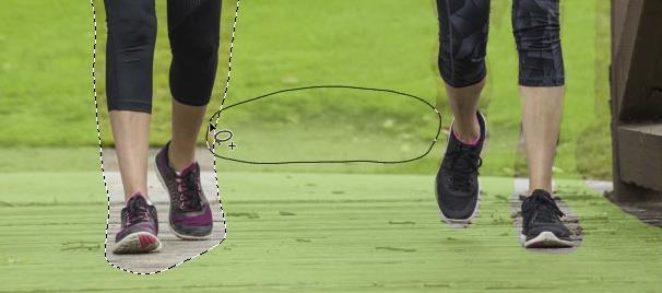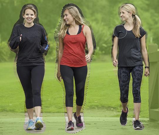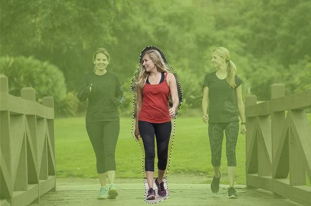 我会围绕中间的女人画一个大概的选择轮廓。为了达到最佳效果,请与人保持密切联系,并保持一定的空空间,以便Photoshop使用:
