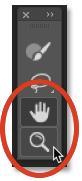 取样画笔和套索工具下面是Photoshop的标准手形工具(用于平移和滚动图像)和缩放工具(用于放大和缩小):
