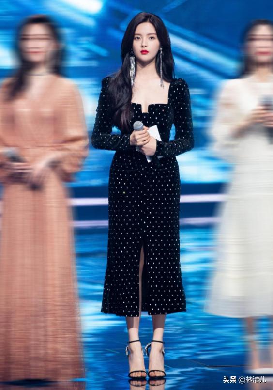 天鹅绒长裙比较隆重。如果你想变得更轻,你可以尝试短裙。比如秦岚的抹胸红丝绒裙,不规则的设计,增添了时尚感,露出她修长的筷子腿,优雅中又带点性感。也许这就是她心中“白月光”最好的诠释吧?