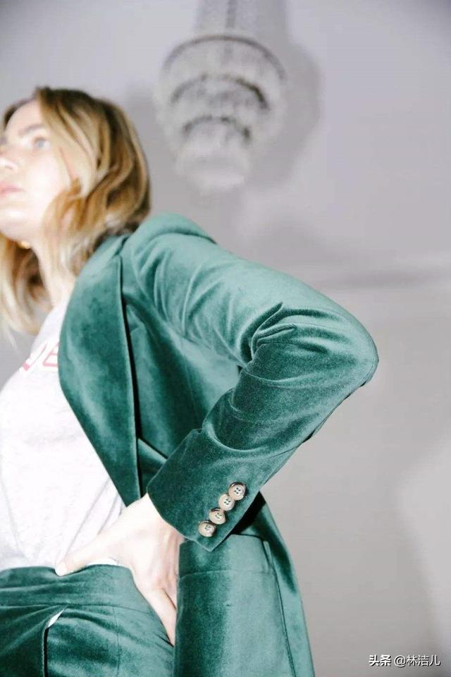 说白了,这两年复古风大行其道,丝绒材质成为时尚圈最火的元素之一。不仅在视觉上显得有流动倒影的效果,整体质感也相当高级。不用任何配饰也能穿出时尚感。