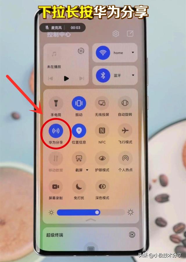 首先,我们将手指移到屏幕顶部,向下滑动找到[华为分享]