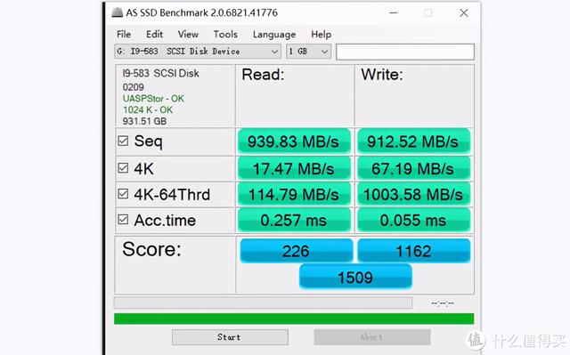 3.NVME硬盘盒连接时,传输速率达到900MB/s,比传统SATA3固态硬盘盒快一倍: