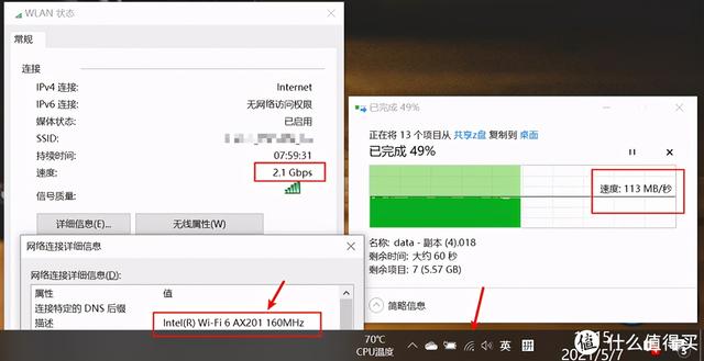 这个复制速度并没有跑满无线网卡的带宽,主要是因为路由器只有千兆端口,瓶颈在路由器。