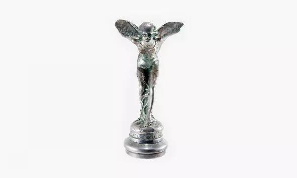 当时,巴黎的编舞家兼舞蹈家罗伊·福勒正在舞蹈界掀起一场革命。蒙塔古带桑顿去巴黎歌剧院看她的演出。在灯光下,一系列完美的舞蹈展现的正是蒙塔古想要的形象:一个穿着紧身长纱的女人,其微妙而美妙的身材在长纱下更加美丽。几经修改,飞天女神的形象终于成型:双腿弯曲,头向前伸——她似乎在凝视着前方的路,长长的细纱长裙随风飘动,紧紧包裹着她曼妙的身躯。1911年,它正式成为劳斯莱斯汽车的标志。