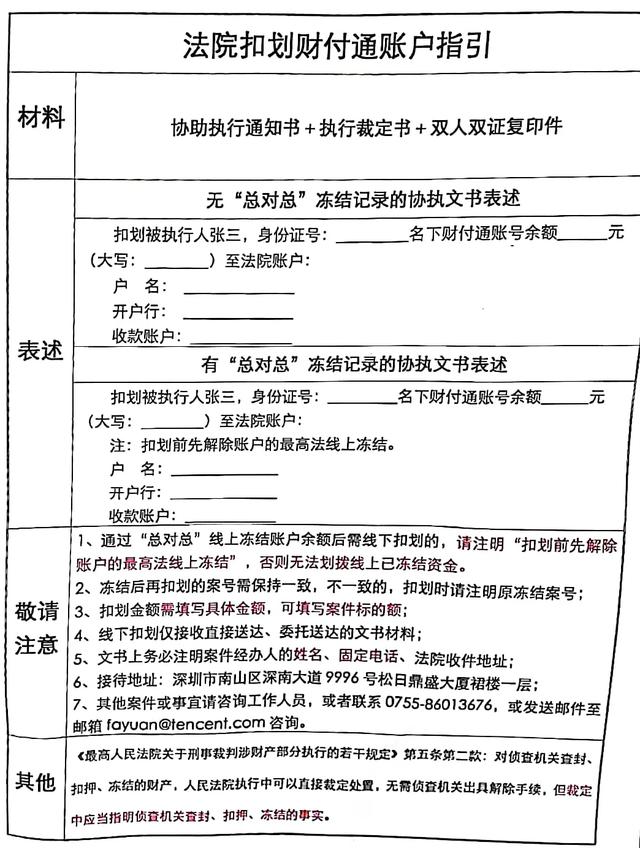 法院扣款财付通账户指引