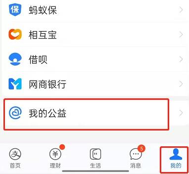 1.打开支付宝,点击我的,滑动到最后,点击进入我的慈善。