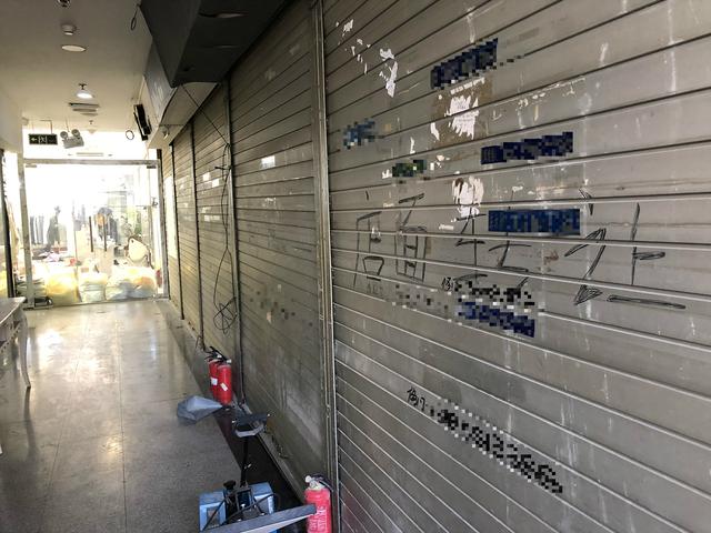 关门的店很多,门上写着门店转让。