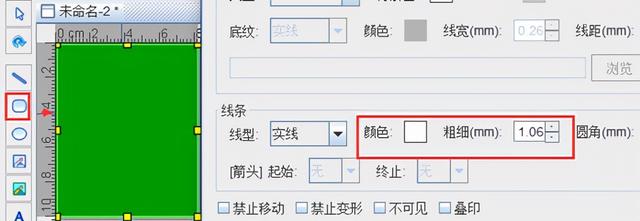 点击软件左侧的“角矩形”按钮,在画布上画一个矩形框,双击角矩形,在图形属性-基本中自定义线条的颜色和粗细。