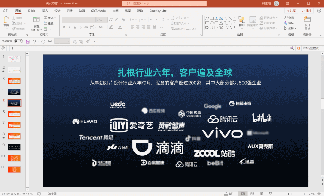 首先,我们来给出一个设定。这页PPT是公司的合作伙伴。现在我们来排版吧。