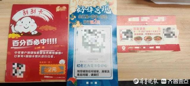 2月27日下午,记者来到济南市市中区经四路的吴冶面馆(经四路一家店)。在商店的平台桌子上,有一整箱优惠返现卡。据工作人员介绍,这些卡打包的时候都是放在外卖盒里的。如果图片印在平台上并被赞,则返还2.88元。
