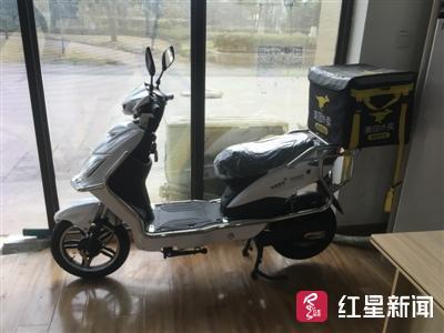 然后,工作人员指了指入户门的位置,对方口中提到的一辆电动车,配有美团外卖箱,停在门口展示。