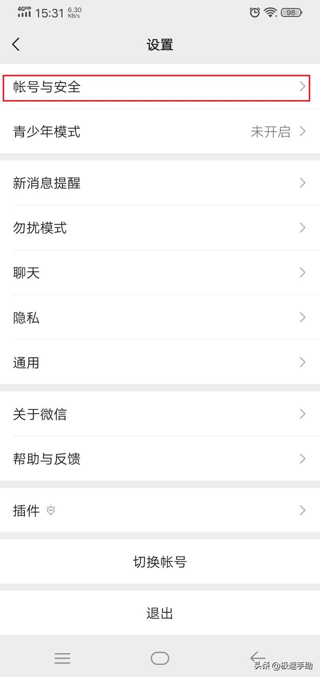 第三步:在微信的设置界面,我们找到【账号和安全】选项,点击打开。