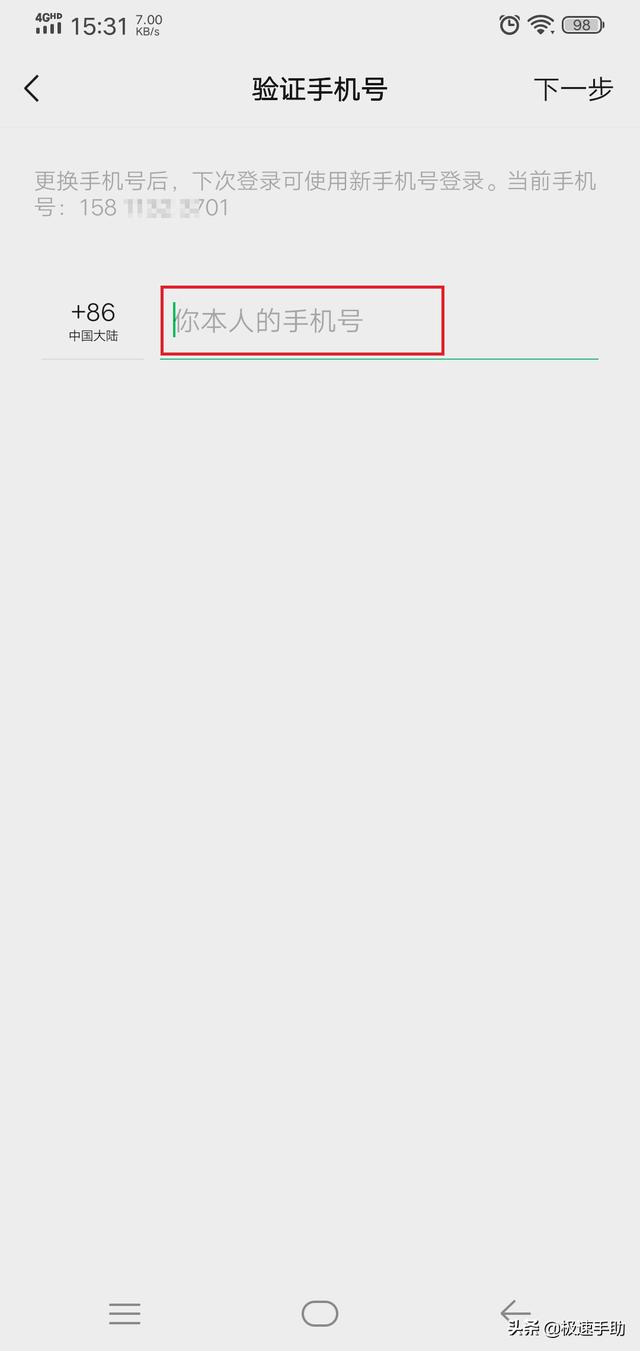 第六步。最后,我们输入新的电话号码,然后验证它。