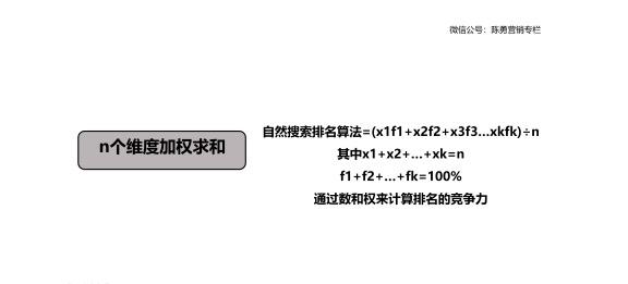 自然搜索排名算法= (x1× f1+x2× F2+x3× F3+...+xk× fk)/n .中间
