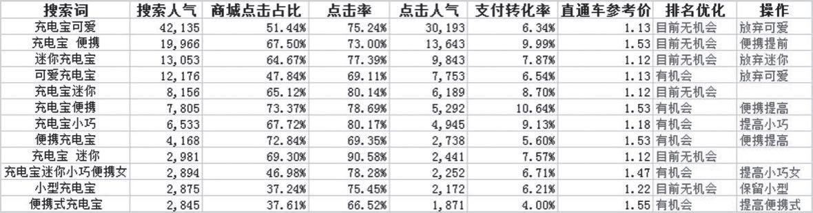 一个是目前没有机会,也就是说因为我目前的各种基础,现在基本没有机会排到TOP3,所以暂时放弃这个词。比如“可爱充电宝”这个词,我通过算法匹配发现目前没有机会,那我就暂时放弃这个词。