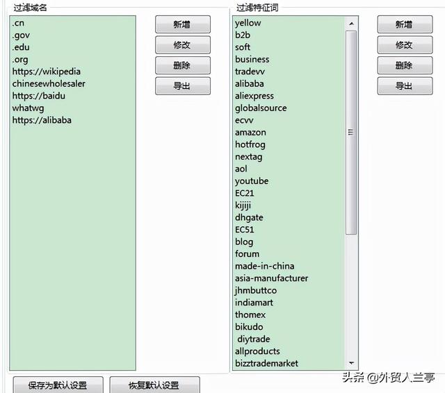 6)记忆一些常见的乱七八糟的信息,直接设置排除过滤器。常见的乱七八糟的信息主要是一些门户网站或者B2B。在搜索过程中,你可以根据你的关键词结果逐步总结记录,每次搜索时直接写入排除字符。下面是一些常见的。因为每个用户的产品使用的关键词不一样,反馈结果也不一样,所以需要你自己去积累和记录常见的排除字符。