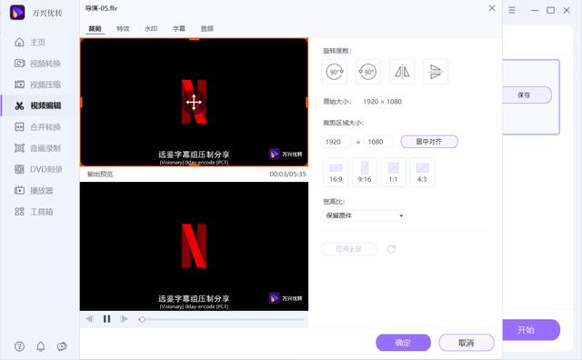 点击相应的功能对视频进行剪切和裁剪,点击【确定】完成操作。