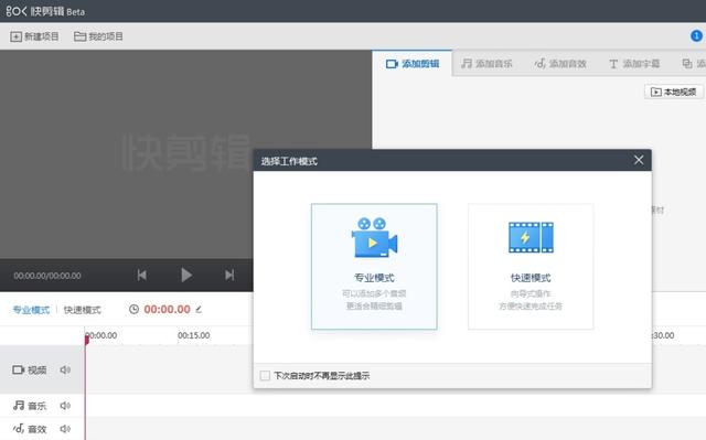 快剪辑是一款免费的PC端视频剪辑软件,功能齐全,操作简单,可在线观看和剪辑。支持视频录制、视频合成、视频拍摄、添加视频、音效、特效等。