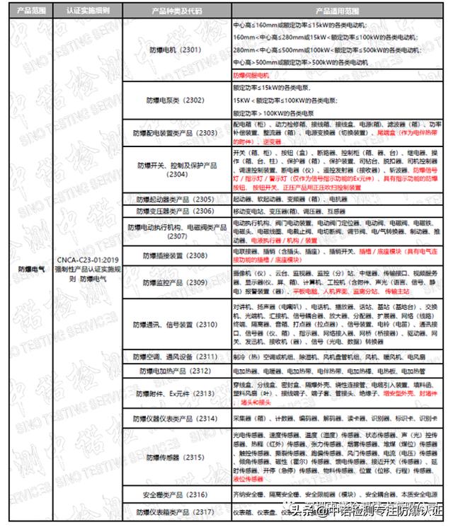 根据CNCA 2020年4月发布的《强制性产品认证目录(2020年修订)》的描述和定义表的基本原则,防爆电气设备的CCC认证产品目录分为以下17类。