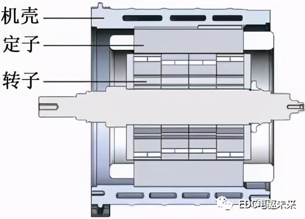 为了满足技术指标的要求,需要对定子和转子结构进行反复设计、仿真、分析和校核。最后通过计算分析确定了铁芯规格:外径180 mm,长度125 mm电机外壳采用低压铸造成型,外壳自带螺旋冷却通道。驱动电机的定子和转子的结构如图4所示。