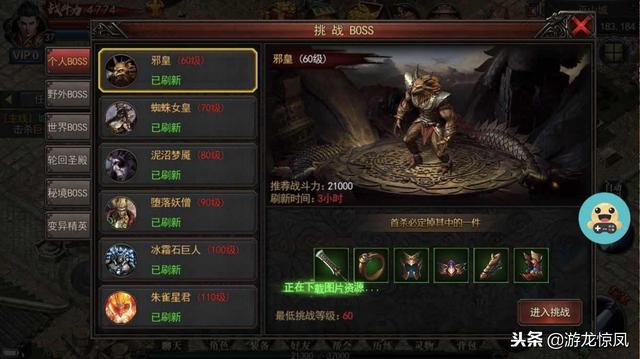 当然,对于时间比较充裕的玩家来说,游戏中还有奖金BOSS,比如福利BOSS、冒险BOSS、远古BOSS等等。这些BOSS要求玩家手动寻找,但是他们的奖励也是非常丰厚的!