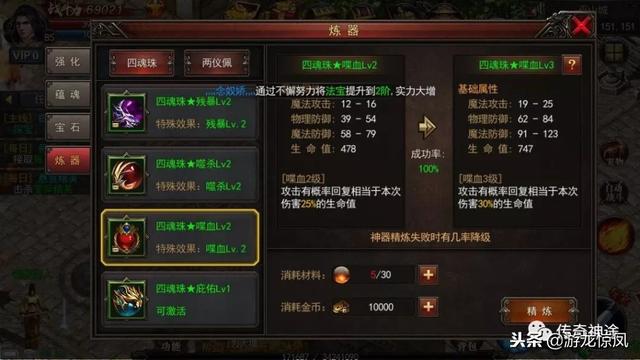 3.道士等级升级,召唤兽也会变得强大。召唤变化等级为:60级,65级,70级,75级,道士不再脆弱。