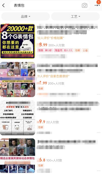 目前来看,某宝也可以看作是虚拟产品的集合。基本上你需要的产品都能在某宝找到。表情包也不例外。同样的,你只需要搜索“表情包”就可以看到很多类型的产品,然后选择购买。