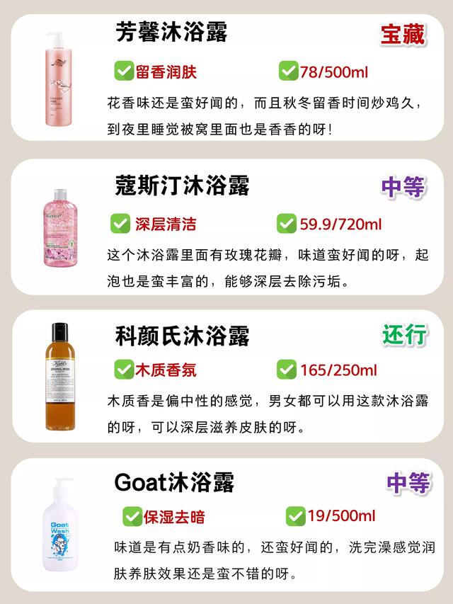 之前只知道六神和多芬沐浴露,不知道洗完澡好用不好用。后来才知道我们也有很多国产沐浴露可以提亮肤色,留下堪比大牌香水的香味!