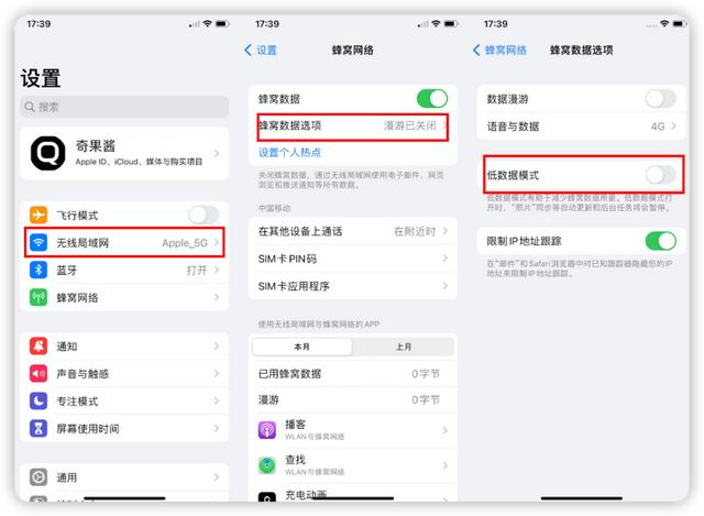 在iPhone上,无线网络和蜂窝数据都具有低数据模式。